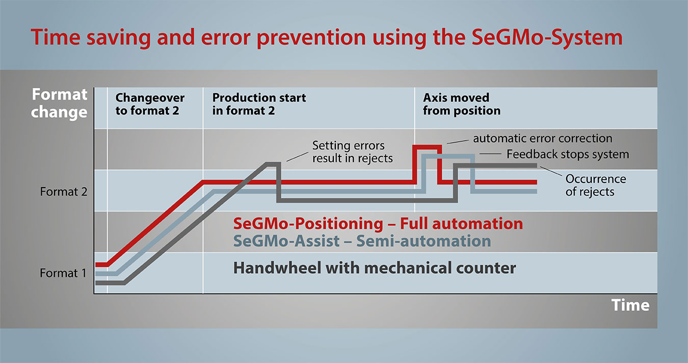 Dafür werden unter anderem Parameter wie die Anzahl der Umrüstungen pro Tag, Produktionstage pro Woche, Dauer der manuellen Rüstzeit, benötigte Mitarbeitende für die Verstellung sowie der durchschnittliche Verlust während eines Produktionsstopps berücksichtigt.