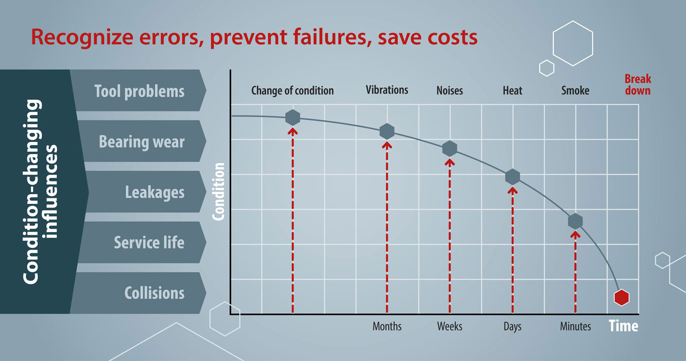 Grenzwertüberwachung, ereignisbasierte Aufzeichnung und trendfähige Zustandskennzahlen unterstützen eine planbare, zustandsorientierte Wartung und die direkte Anbindung an die Maschinensteuerung.